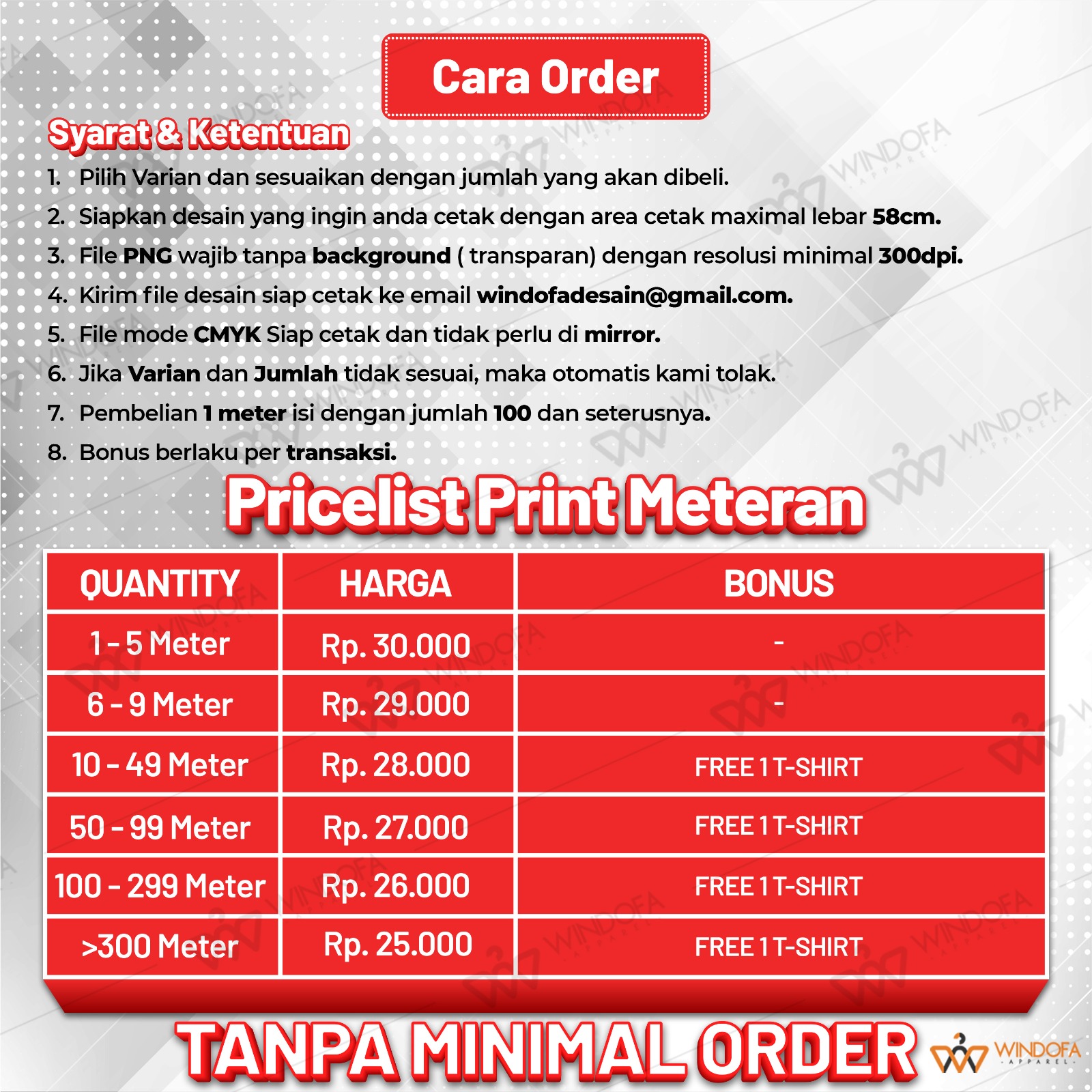 - Minimal pemesanan 50 cm